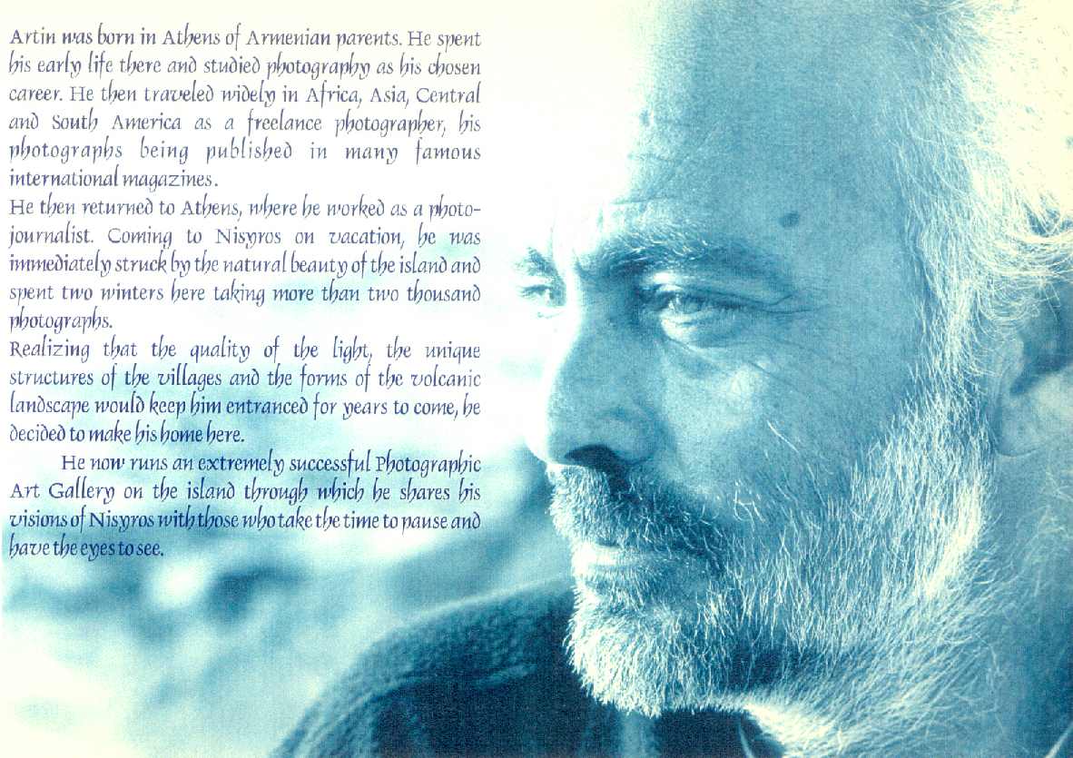 Artin Caracasian Artin is a very talented, qualified and accomplished photographer who has dedicated himself to producing photographs of Nisyros. He also makes them available to people in his shop.